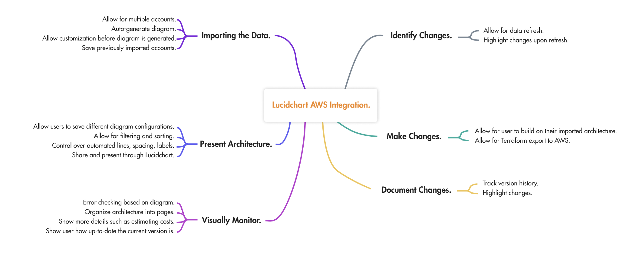 Cloud Engineers have to make enormously complex diagrams for numerous reasons, whether it’s communicating changes or for documentation purposes. Lucidchart had just a barebones feature for importing architectures, but it was rarely used because it was hard to import the data correctly and even harder to manipulate it. Often times, engineers would end up deleting the imported architecture and remake it from scratch. Making a cloud architecture diagram is a pain and a nuisance no one looked forward to doing.