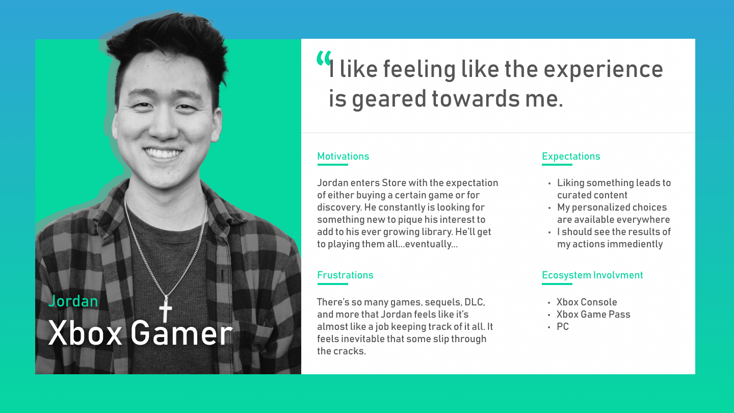 The greatest challenge of this was the layout of the different ecosystems and the effort to converge. At this point, the user could use many different Xbox services, yet have a largely different personalized experience on each.