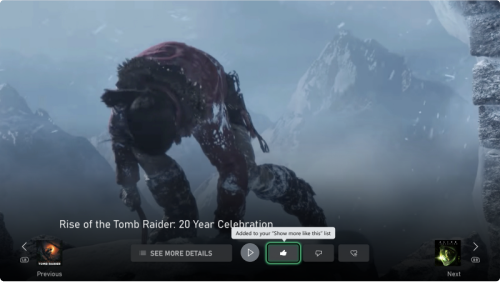 I combined these designs and framework together and shared them with the rest of the company. This helped to jumpstart the Likes/Dislikes work for Store when sharing with product managers. It also marked the beginning of the work on making ubiquitous data sources for personalized data in the Xbox ecosystem. Other endpoints are now implementing this feature as well, using the framework to ensure consistency across all products.